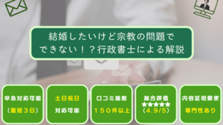 内容証明結婚したいけど宗教の問題でできない!?行政書士による解説 「結婚したいけど宗教問題でできない」とお悩みの方は意外と多いのではないでしょうか。結婚は人生における大きな節目であり、本来は愛情や信頼を土台として築かれるべきものです。しかし、現実には「宗教」が壁となり、結婚に踏み切れない、または家族から強... 2025.04.10内容証明宗教脱会離婚